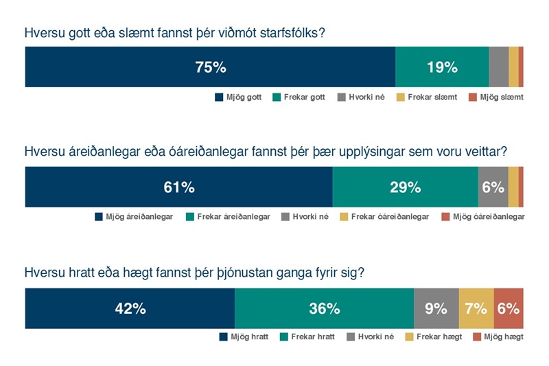 Í könnuninn er spurt hversu hratt eða hægt fólki fannst þjónustan ganga fyrir sig. Þar sögðust um 78 prósent að þjónustan hafi gengið mjög eða frekar hratt, en um 13 prósent að hún hafi gengið mjög eða frekar hægt.